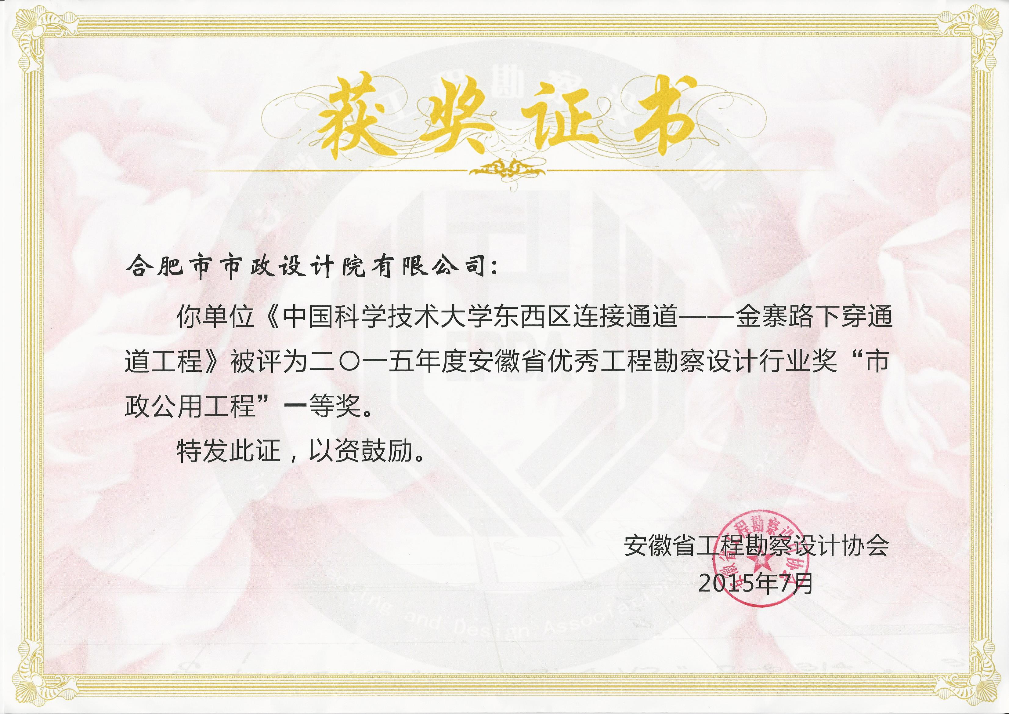中国科学技术大学东西区连接通道-金寨路下穿通道工程 — 省级一等奖