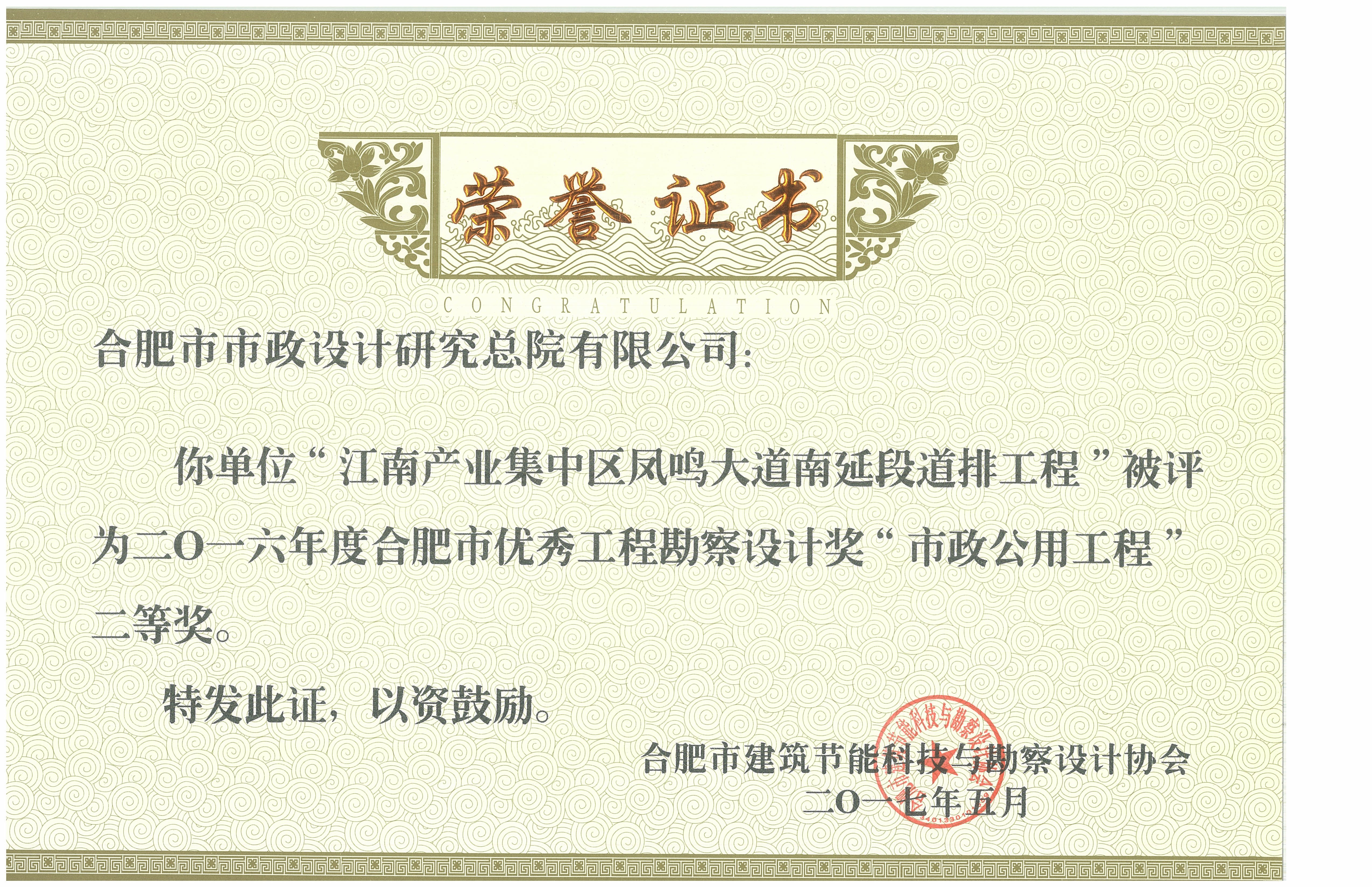 江南产业集中区凤鸣大道南延段道排工程——市级二等奖