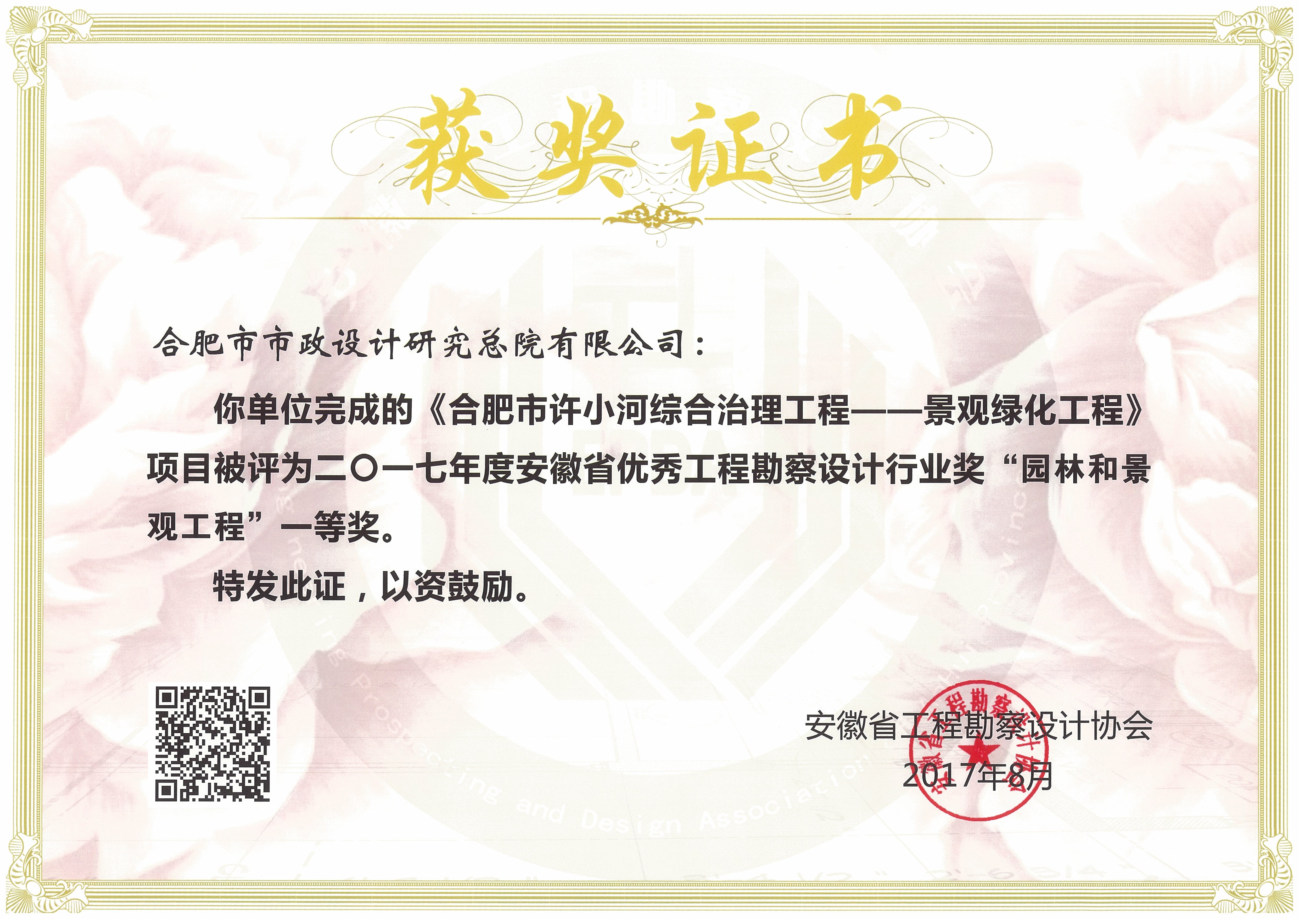 合肥市许小河综合治理工程—景观绿化工程——省级一等奖