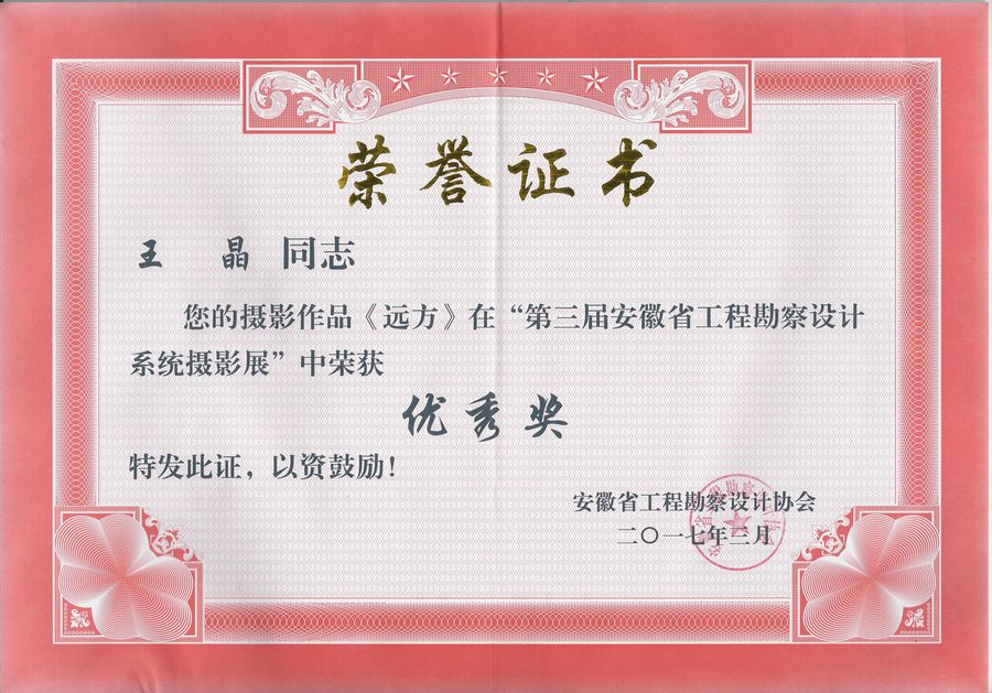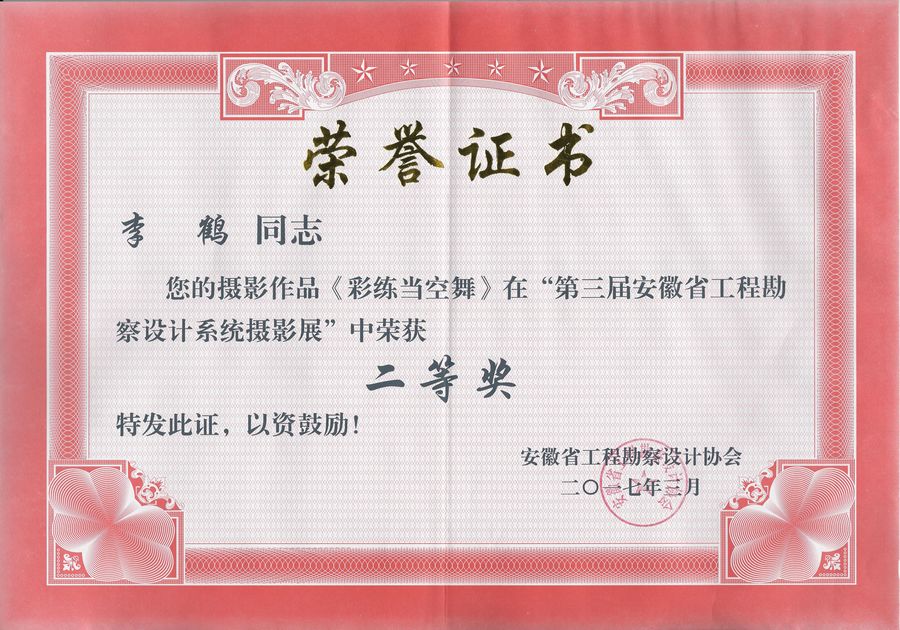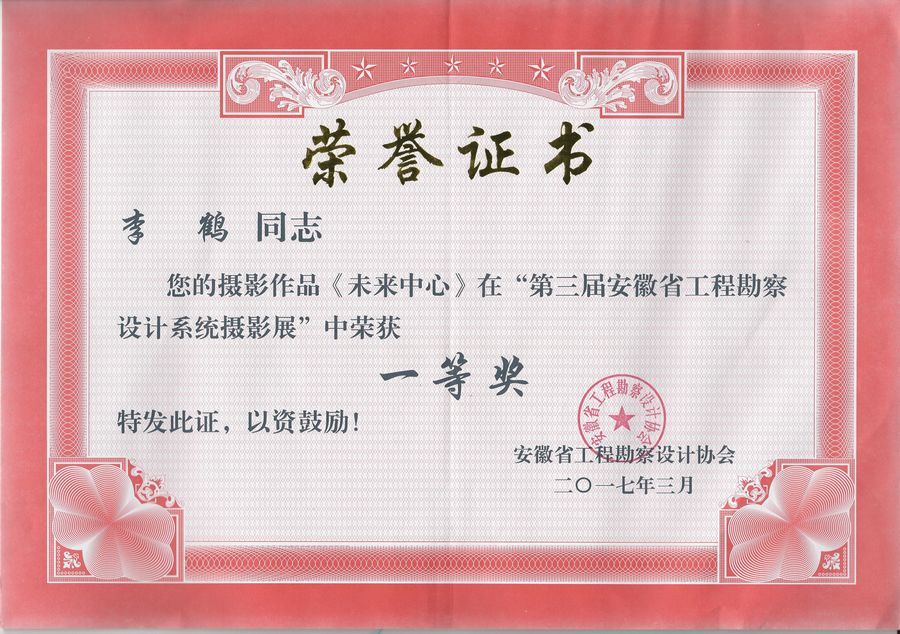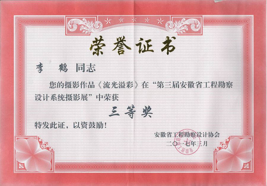 我院获得第三届安徽省工程勘察设计系统摄影比赛优秀组织奖1项、个人奖4项