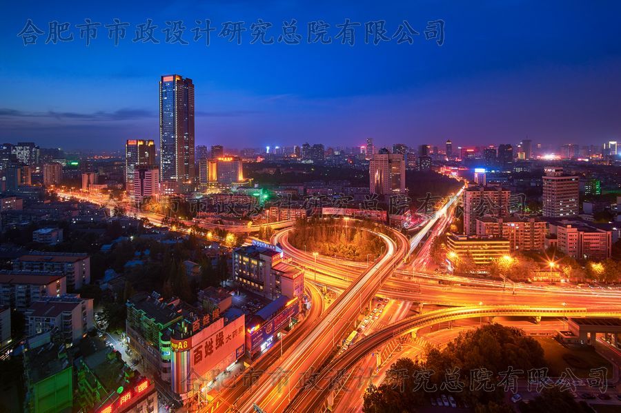 作品简要说明:该作品反映的是合肥市金寨路与南一环交口的金寨路高架桥及附近城市夜景,金寨路高架桥投资20亿元,2006年9月30日动工, 2008年2月5日完工,开启了合肥市“空中公路”的新时代。该工程由上海市政工程设计研究总院(集团)有限公司和合肥市市政设计研究总院有限公司共同设计完成。