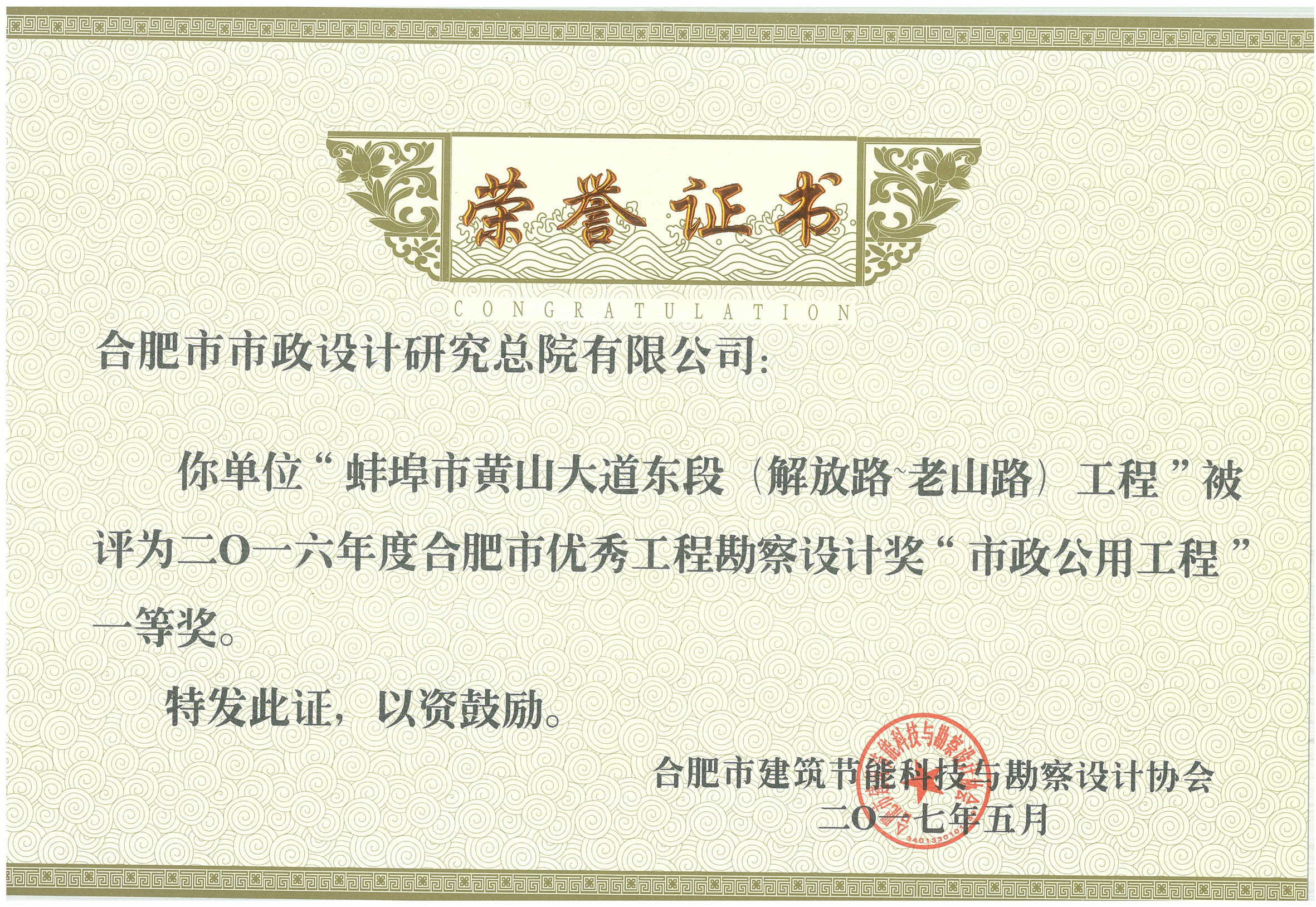 本次评选活动面向全市勘察设计企业,经工程勘察设计单位申报,合肥市建筑节能科技与勘察设计协会各专业评审组评选、评审委员会审定,在市政公用工程类项目中共产生19个获奖作品,其中一等奖3个,二等奖6个,三等奖10个。我院设计的蚌埠市黄山大道东段(解放路—老山路)工程喜获一等奖,江南产业集中区凤鸣大道南延段道排工程、合肥市肥西路改造工程—南淝河大桥、肥东县污水处理厂及配套管网三期工程等3个项目获二等奖,宣城市日新路高架桥梁工程、铜陵市秀水河(翠湖一路—翠湖六路)河道整治工程、合肥市许小河综合治理工程—景观绿化工程、合肥陶冲湖公园景观提升工程等4个项目获三等奖,获奖项目总数居各单位之首。