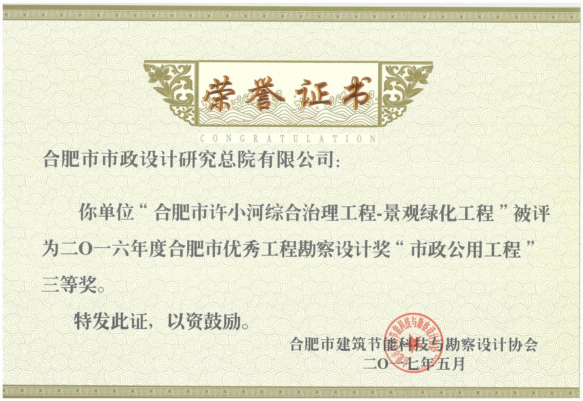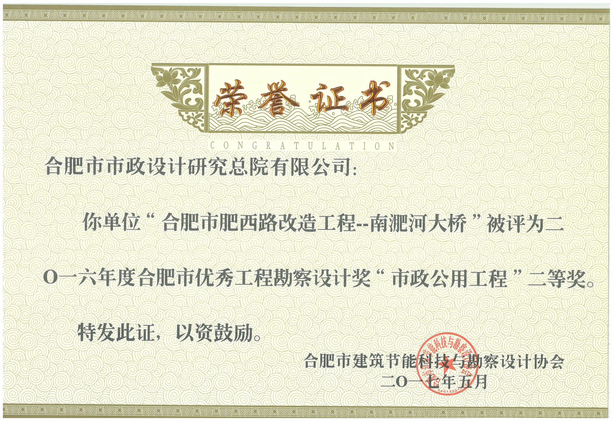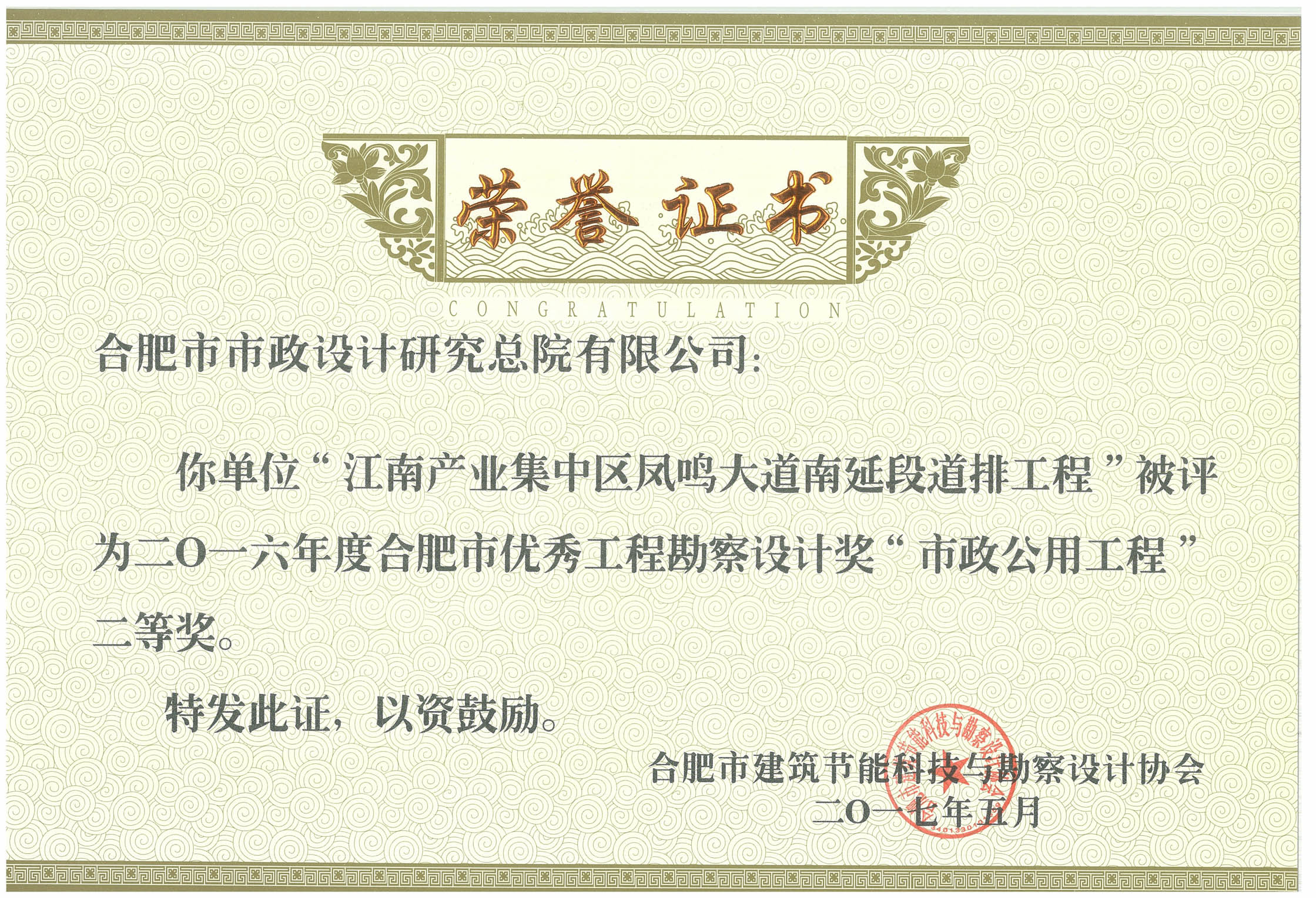 我院荣获2016年度合肥市优秀工程勘察设计8个奖项