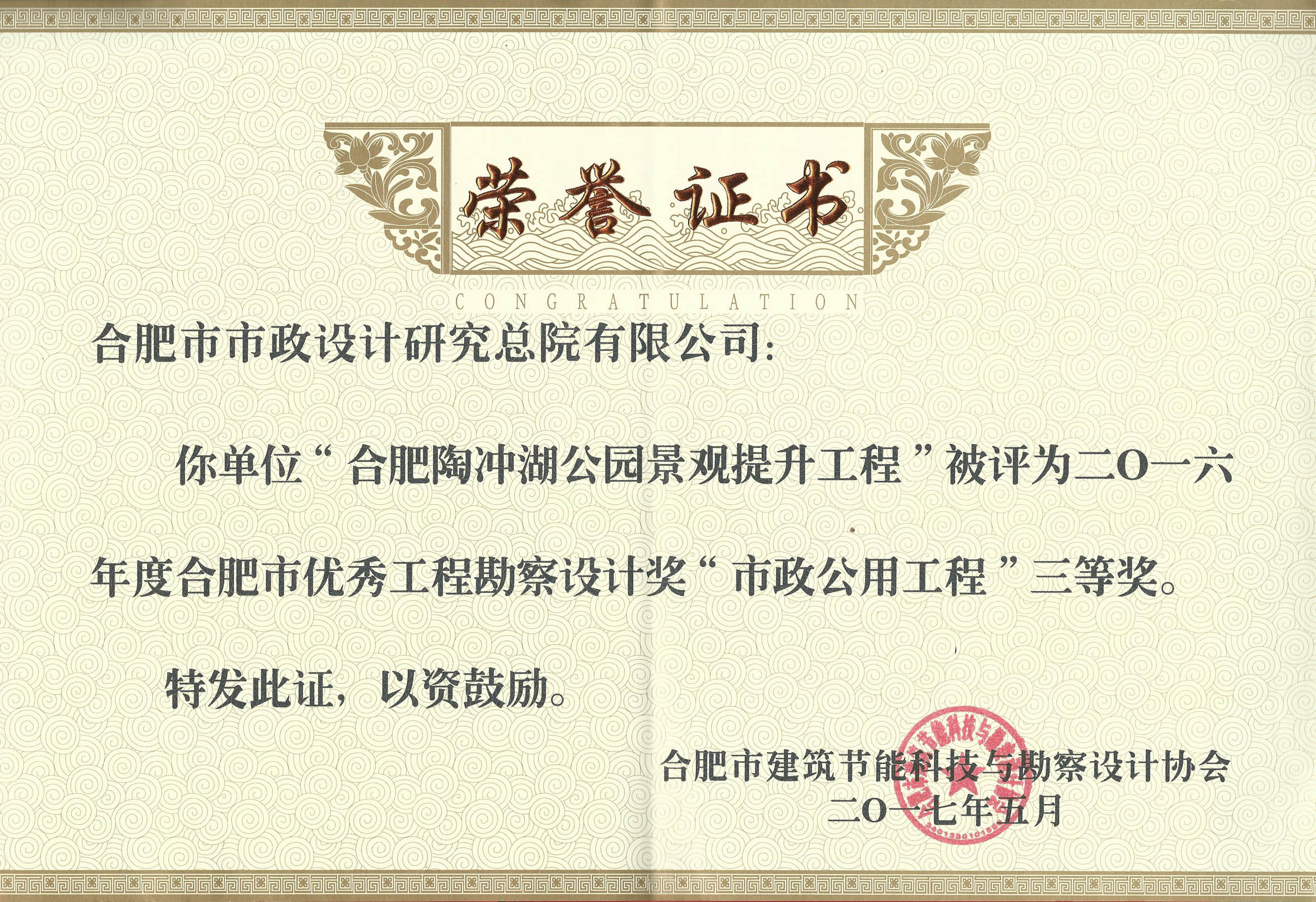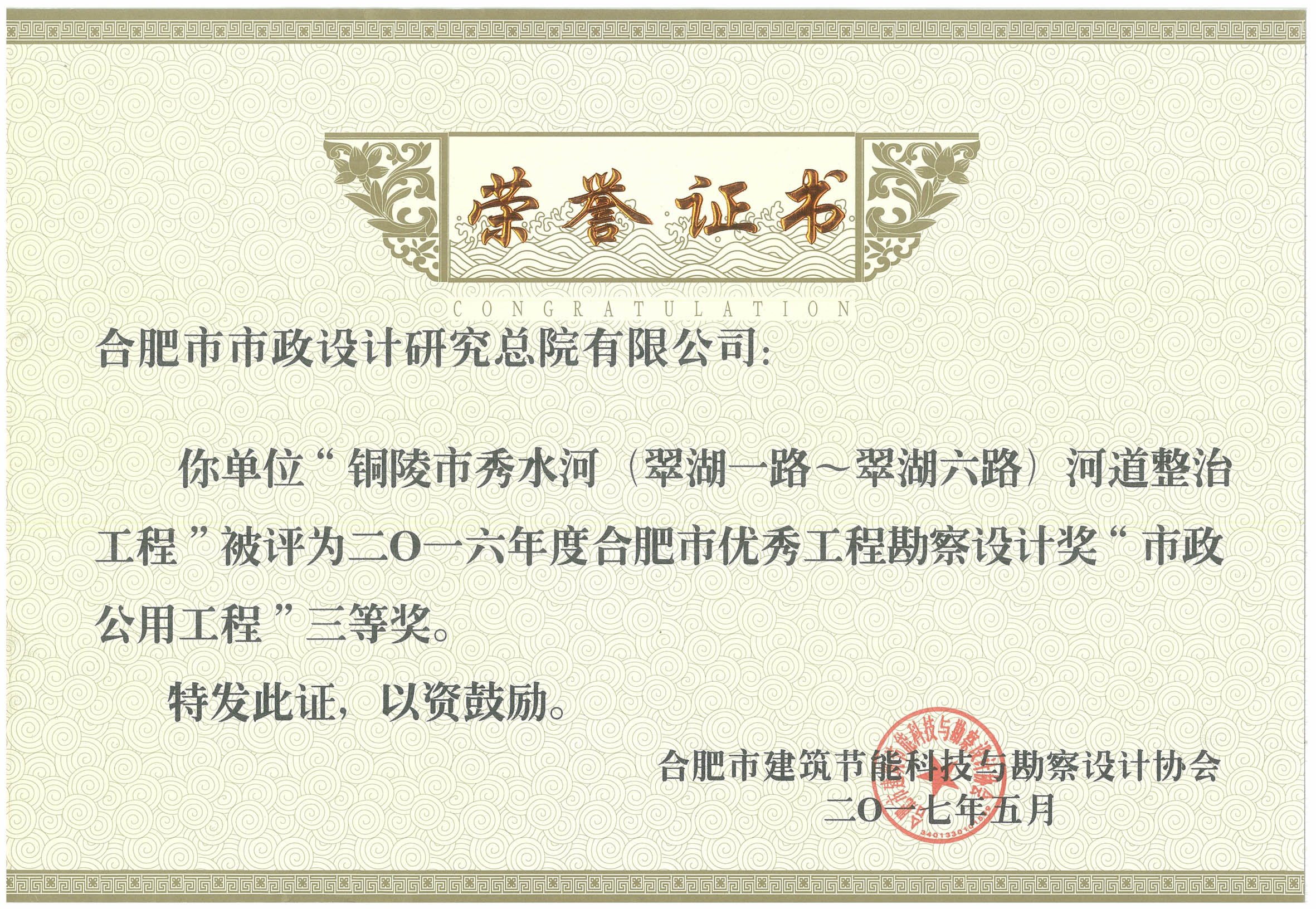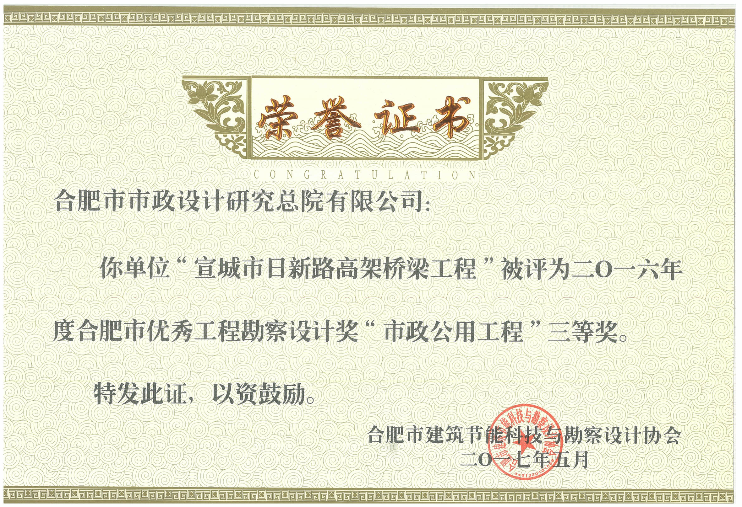 我院荣获2016年度合肥市优秀工程勘察设计8个奖项