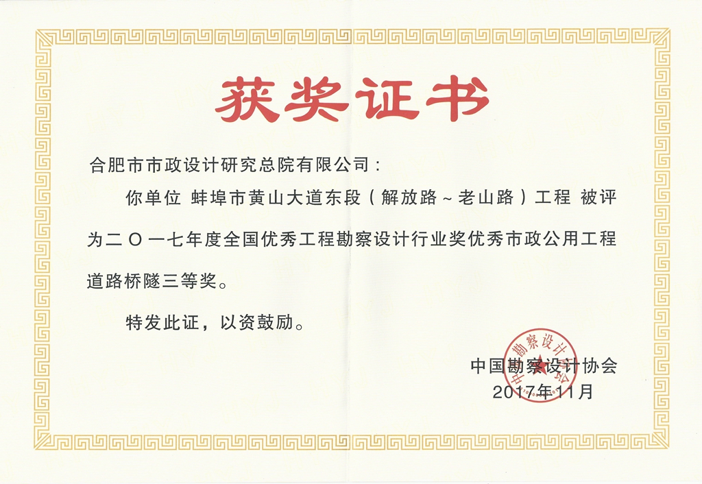 蚌埠市黄山大道东段(解放路—老山路)工程——国家三等奖