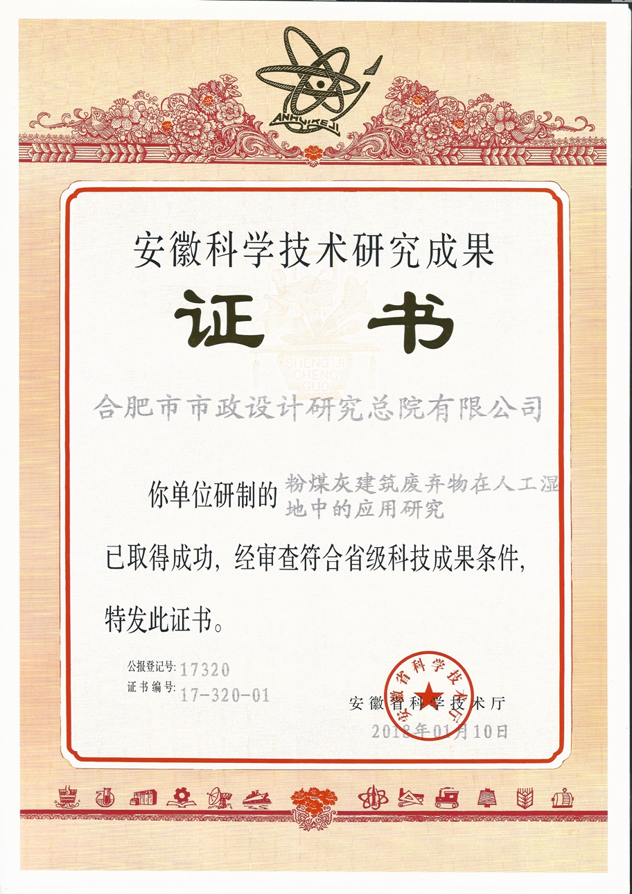 粉煤灰建筑废弃物在人工湿地中的应用研究——省级科技成果