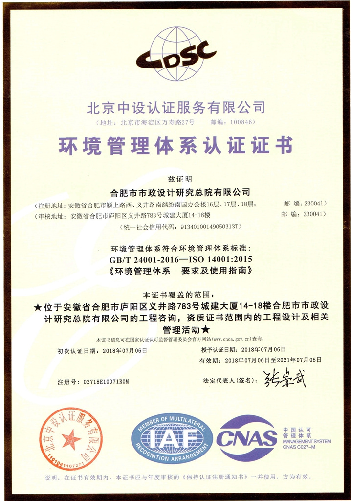 我院自2001年通过ISO9001质量管理体系认证以来,一直坚持“精心设计、美化城市、优质服务、构建和谐”的企业宗旨,全面规范服务标准、提高设计质量,不断加强企业内部管理。此次三大管理体系认证的全面通过标志着我院综合管理水平上升到一个新的台阶。