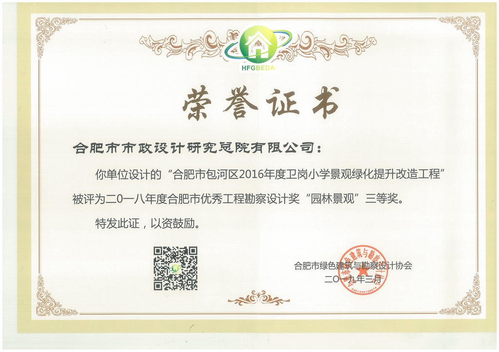 合肥市包河区2016年度卫岗小学景观绿化提升改造工程--市级三等奖