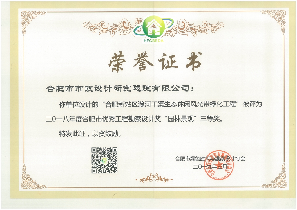 合肥新站区滁河干渠生态休闲风光带绿化工程--市级三等奖
