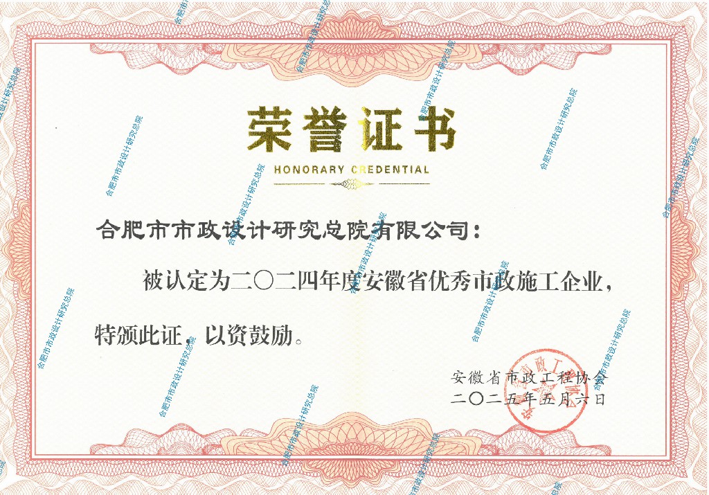 2024年度安徽省优秀市政施工企业