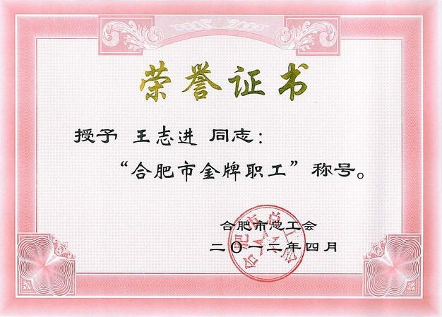 此次评选依据合肥市总工会下发《关于评选推荐合肥市五一劳动奖状、五一劳动奖章、工人先锋号、金牌职工、劳动竞赛优秀组织单位的通知》(合劳竞[2012]2号)文件精神,由各单位工会初评推荐,行业主管部门工会复审把关,报市总工会终审批准,共授予2011年度在重点企事业单位、行业技能竞赛和职工技术创新活动中获得优异成绩的200名职工“合肥市金牌职工”称号。