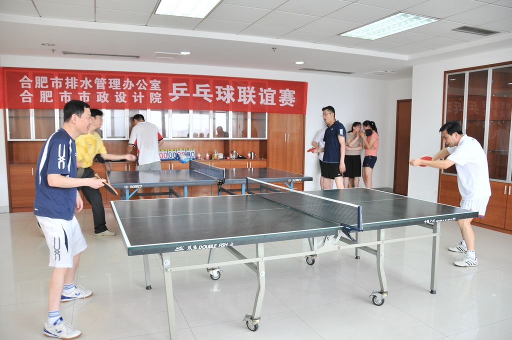 6月16日下午,我院乒乓球队和合肥市排水管理办公室乒乓球队在我院17楼乒乓球室举行了一场友谊赛,排水办刘秀英科长带队参加,合肥市纪委常委刘清、合肥市建委副书记、副主任章斌等领导也应邀参加了友谊赛。