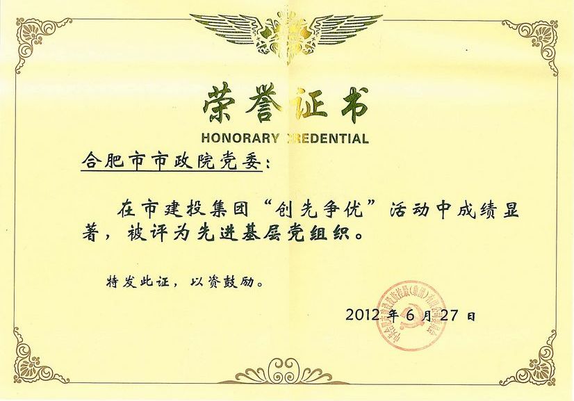 在6月29日召开的合肥市建投集团“创先争优”表彰大会上,我院党委被评先进基层党组织,1人获得优秀党务工作者荣誉称号,2人获得优秀共产党员荣誉称号。