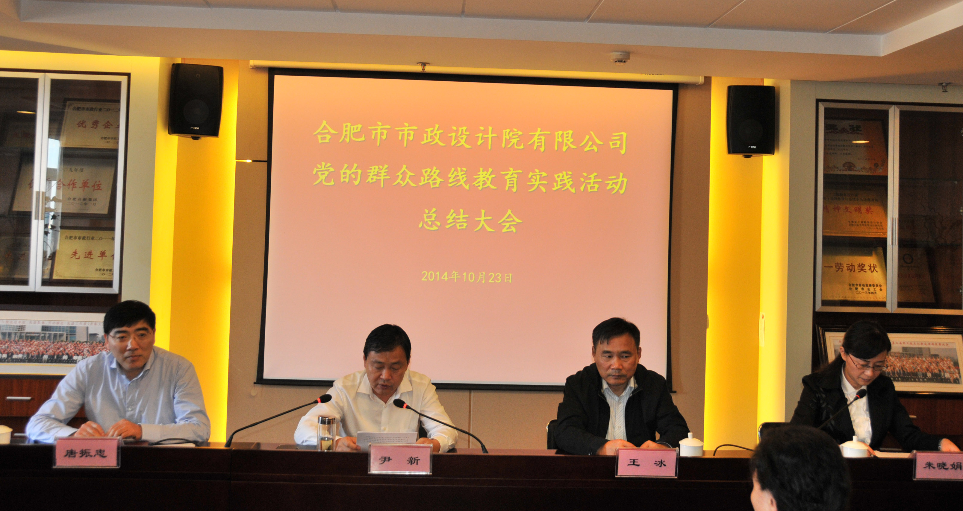 10月23日下午,合肥市政院党委召开党的群众路线教育实践活动总结大会,院党委书记、院长尹新作教育实践活动总结讲话,市建投集团纪委书记王冰出席会议,市建投集团督导组副组长朱晓娟讲话,我院党委委员、副院长唐振忠主持会议。院领导班子、中层干部、全体党员参加了会议。