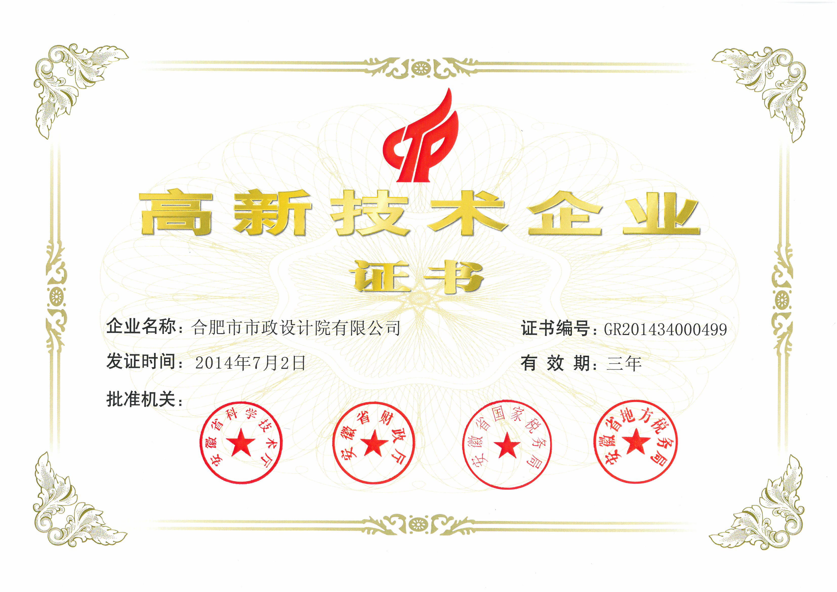 我院荣获国家级“高新技术企业”认证