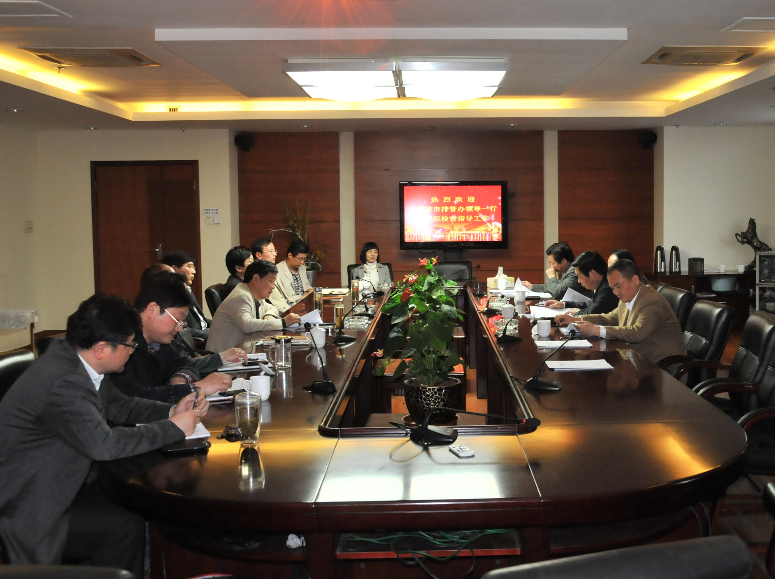 2014年4月25日下午,合肥市建委党委委员、排管办主任戴晓盈一行莅临我院检查指导工作,并在我院19楼第一会议室召开座谈会。
