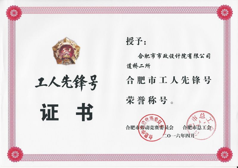 日前,我院道桥二所被合肥市劳动竞赛委员会和合肥市总工会授予“工人先锋号”荣誉称号。