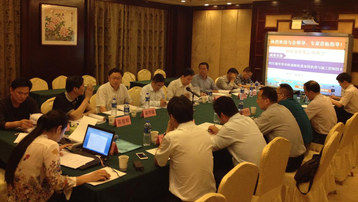 受住房与城乡建设部的委托,2016年5月31日,安徽省住房和城乡建设厅在合肥主持召开了由合肥市市政设计院有限公司、合肥工业大学等单位联合完成的2014年度住房与城乡建设部科技计划项目2014-K5-002和安徽省住房和城乡建设厅科技计划项目2014YF-12《皖江城市带市政道路软基加固机理与施工控制技术研究》科研课题成果鉴定验收会议,我院张乾坤副院长、浦玉炳副总、王敦红所长、合肥工业大学领导及课题负责人石贤增、袁海平等课题组其他成员参加了会议;会议邀请了国内知名专家七名,与会专家听取了课题组对研究内容的汇报,审阅了鉴定材料,经质询和详细讨论,一致认为,课题完成了合同规定的内容,鉴定材料满足鉴定验收要求;项目根据皖江城市带承接产业转移示范江南、江北集中区等区域的市政道路,从理论机理研究、施工工艺与控制参数优化、加固效果评价与工后沉降预测等方面,系统研究了低位高真空击密技术在该区域市政道路的大面积软土地基加固中的机理与施工控制技术,在国内尚属首次,课题成果达到国内领先水平,建议进一步加大研究成果的推广应用,并尽快形成工法。