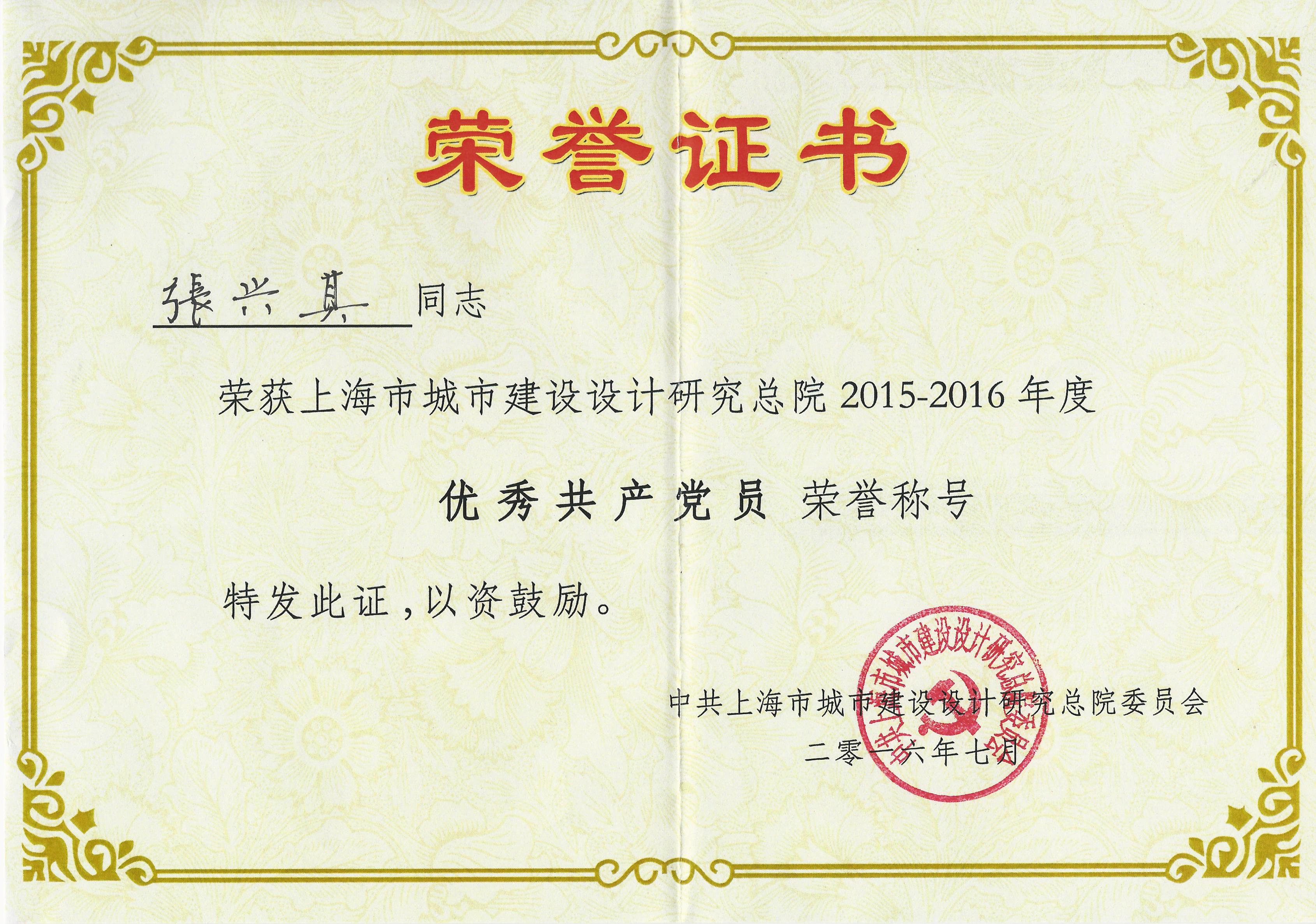我院陈骏和张兴其两位同志获上海城建总院“优秀共产党员”称号